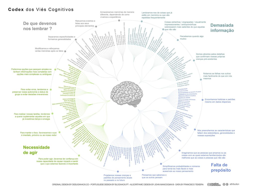 “Pesquisadores identificaram mais de 180 vieses cognitivos distintos que afetam nossas percepções e decisões, muitos dos quais estão relacionados a processos heurísticos automáticos que simplificam a tomada de decisão em situações de incerteza ou complexidade.” (Pohl, 2017).